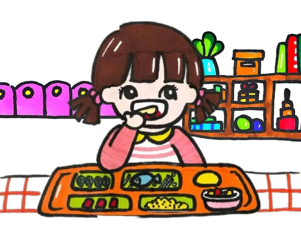 减少零食供应,恢复三餐定时;在家里与孩子一起模拟幼儿园分餐。